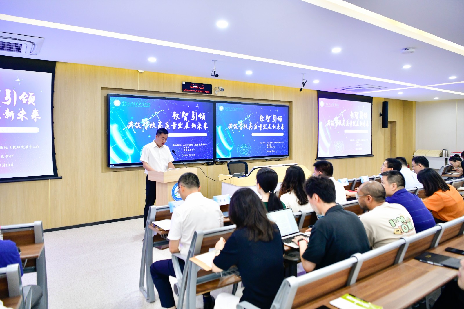 7月10日,电子游戏在科学城主校区教学楼B栋201、203智慧教室,举办首期高质量发展论坛,邀请校内外专家,围绕“数智引领,共筑学校高质量发展新未来”主题,进行深入研讨。