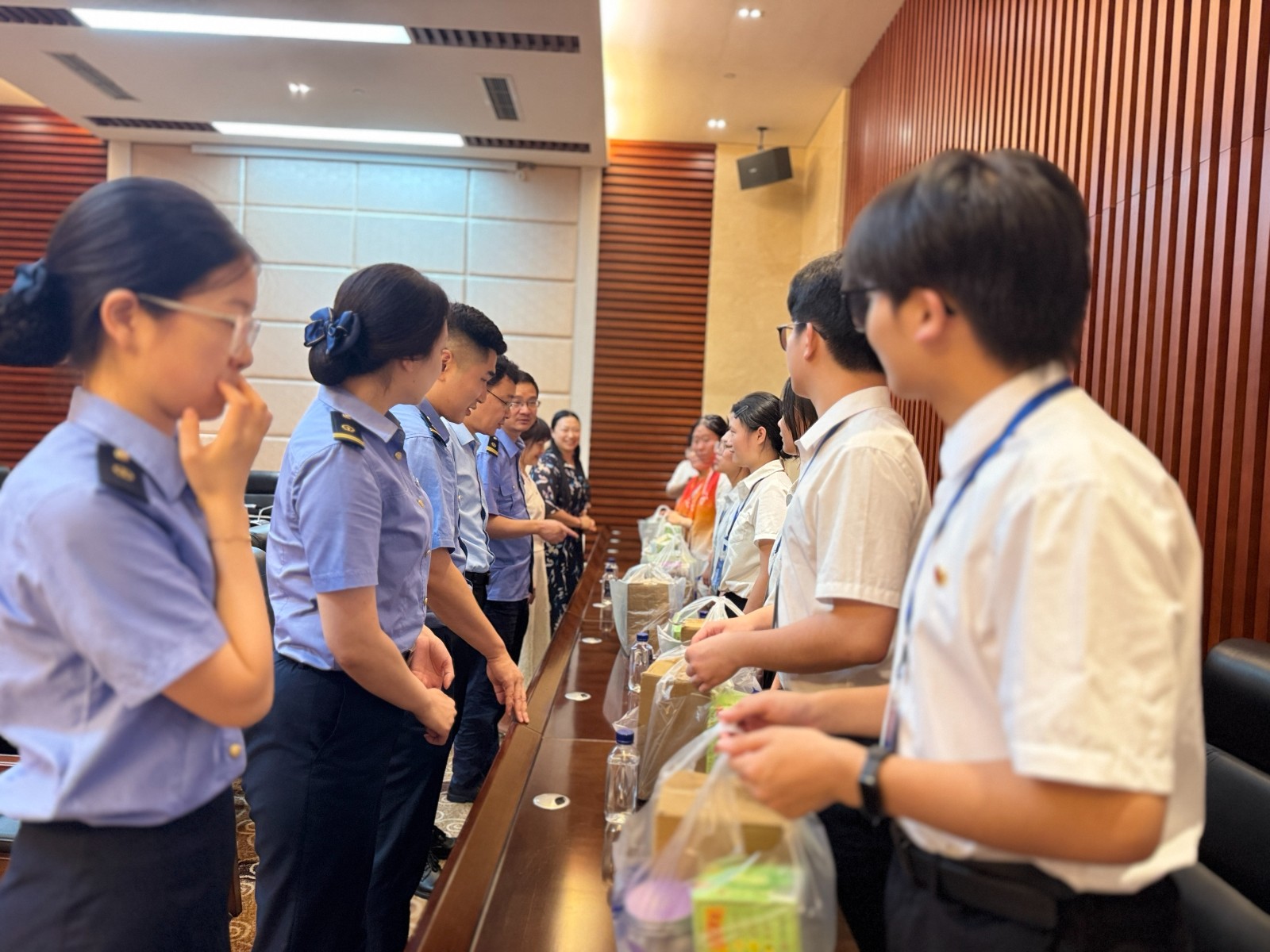 座谈结束后,校企双方领导共同为参加暑期社会实践的同学代表发放了清凉饮料等慰问品。