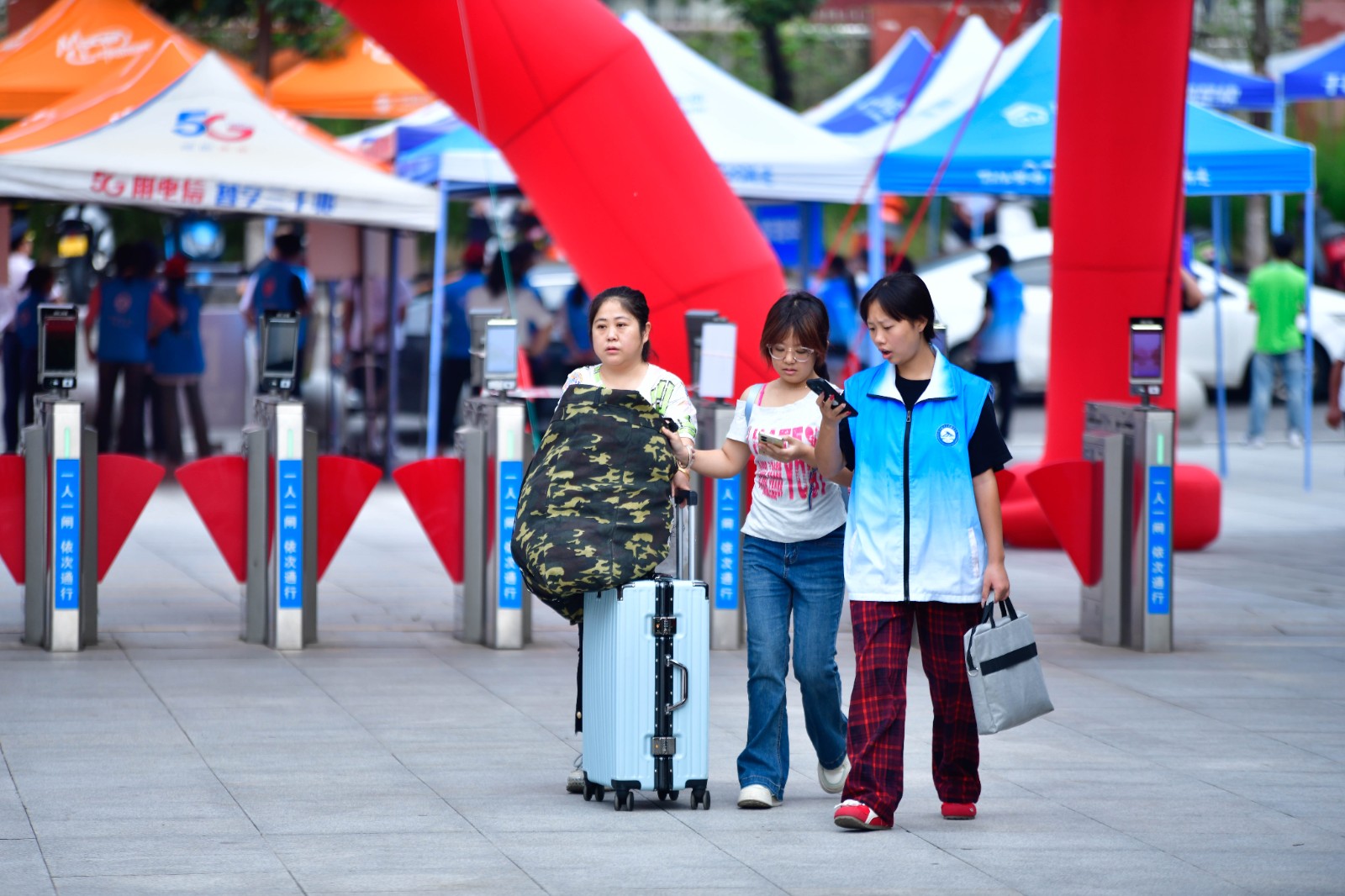 校内,从科学城新校区大校门到教学楼报到大厅,从报到大厅到学生宿舍,沿途设有学生志愿服务站点,为入校新生提供服务和导航,并在科学城主校区一号门设有志愿服务点,为不小心走错校区的新生和家长提供服务。校外,在龙头寺火车站南北广场、重庆西站、双福地铁站、双福汽车站设有新生接待点,在学校所在的双庆路留出专门通道,确保来校报到新生和家长,以及接站车辆能够顺畅通行。