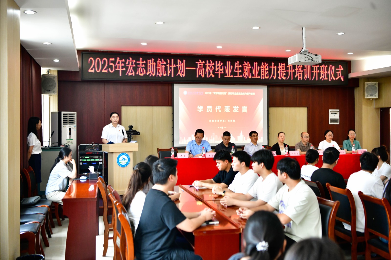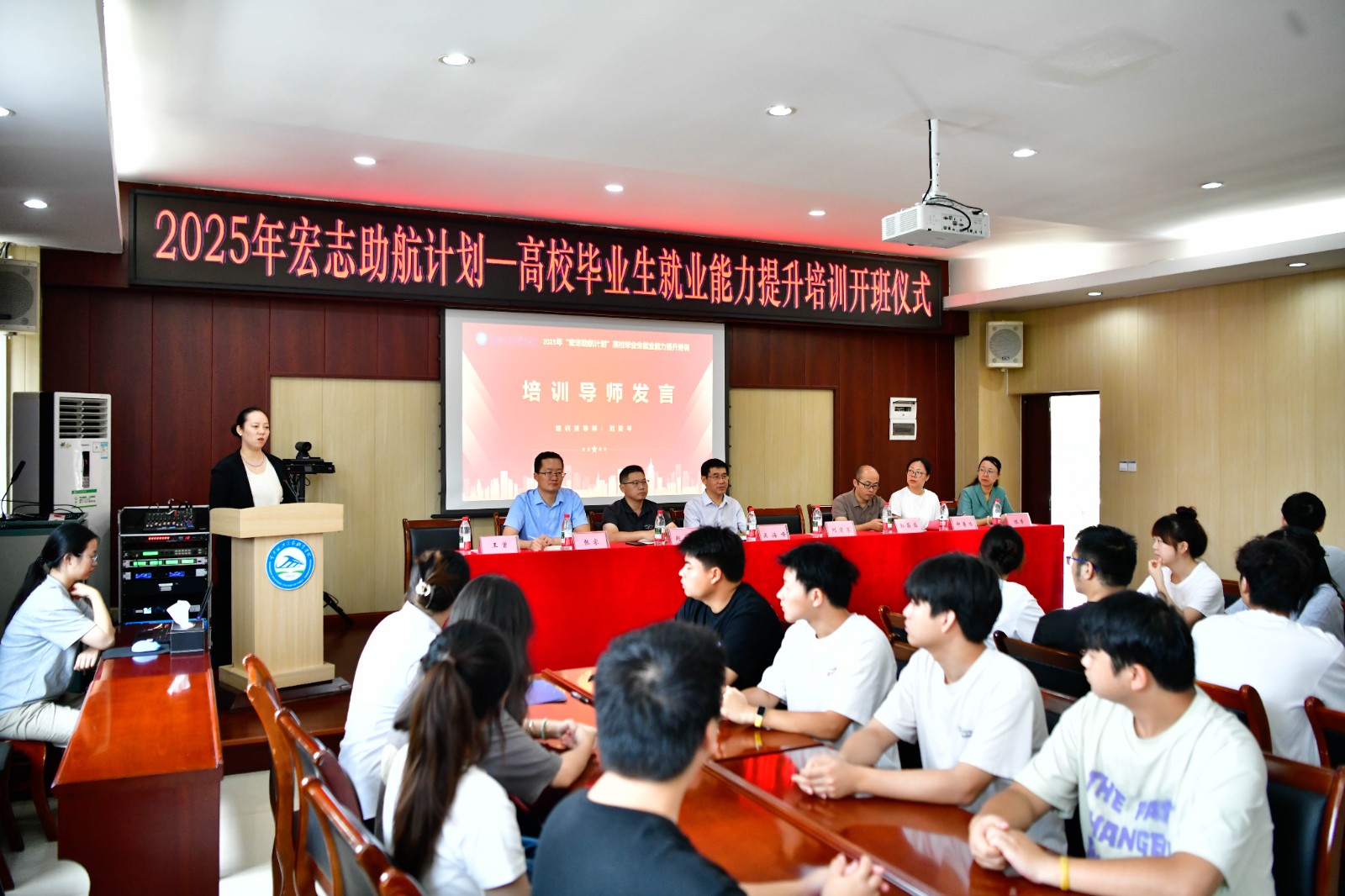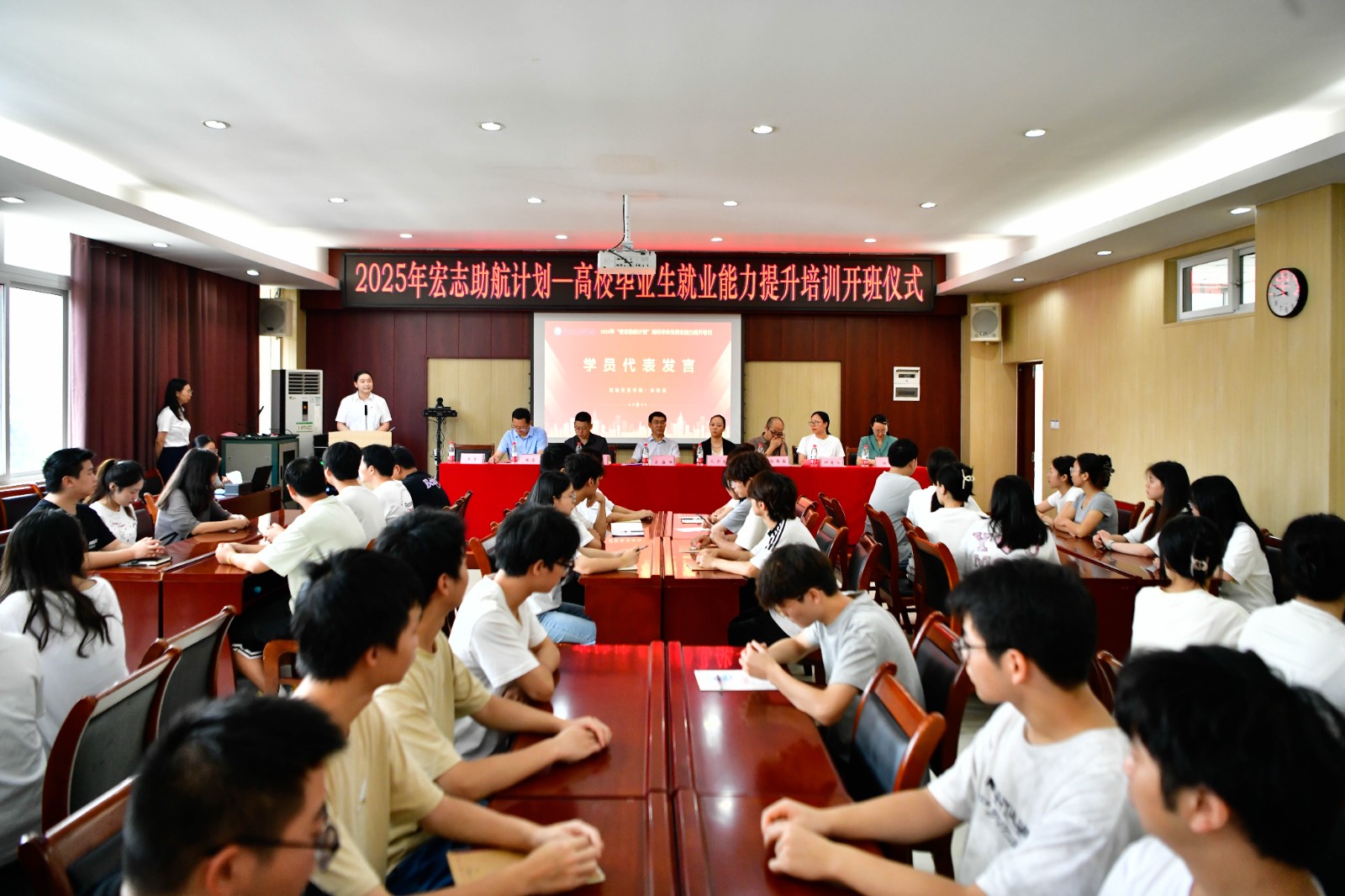 招生就业处就业指导中心和相关二级学院党政负责人,全体参训学员参加开班仪式。