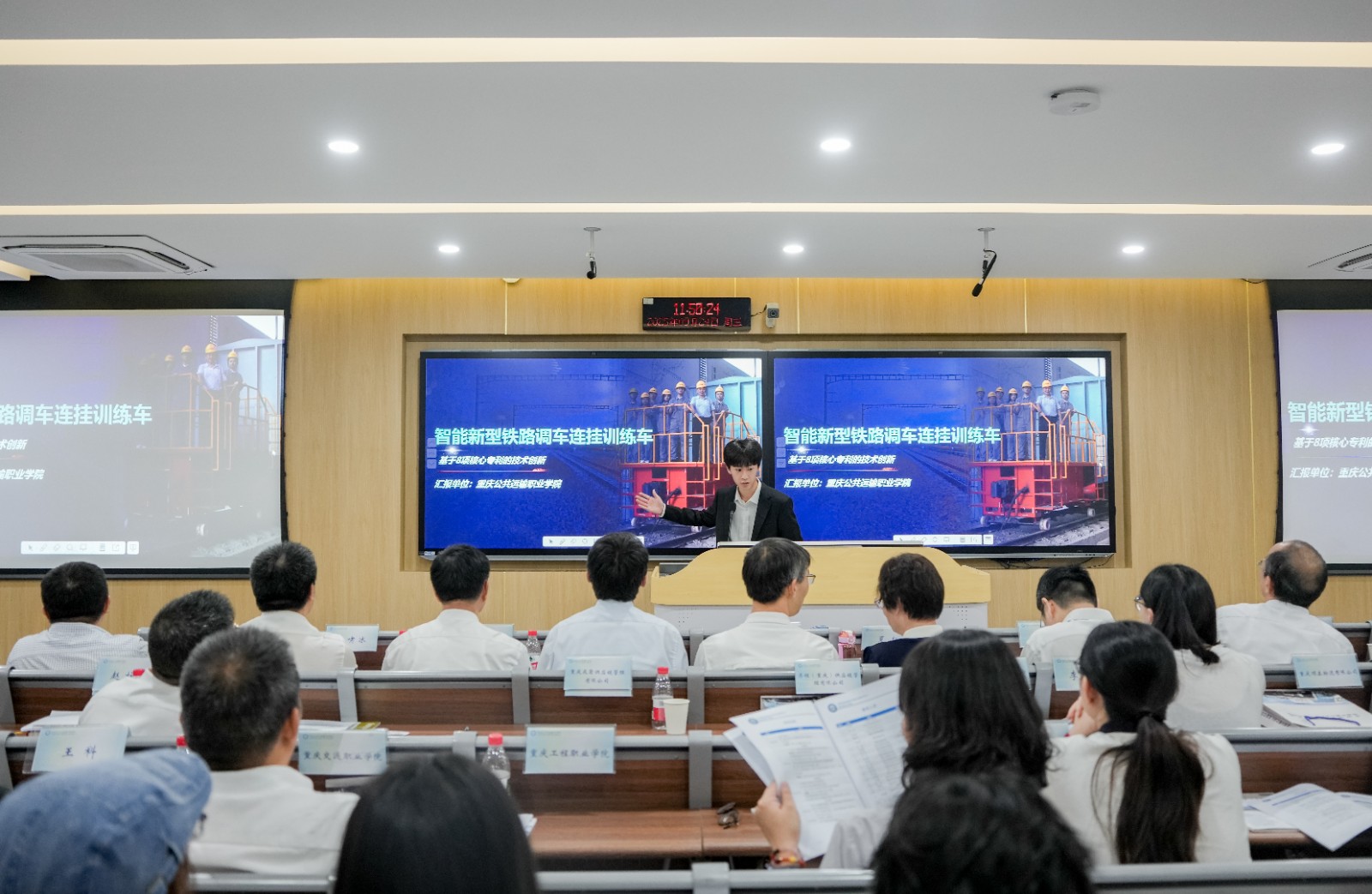 在成果展示环节,电子游戏周宗明创新团队研发的智能新型铁路调车连挂训练车,重庆交通职业学院王科博士研发的一种物流分拣设备及其分拣系统,作为多式联运领域技术成果代表在会上亮相。