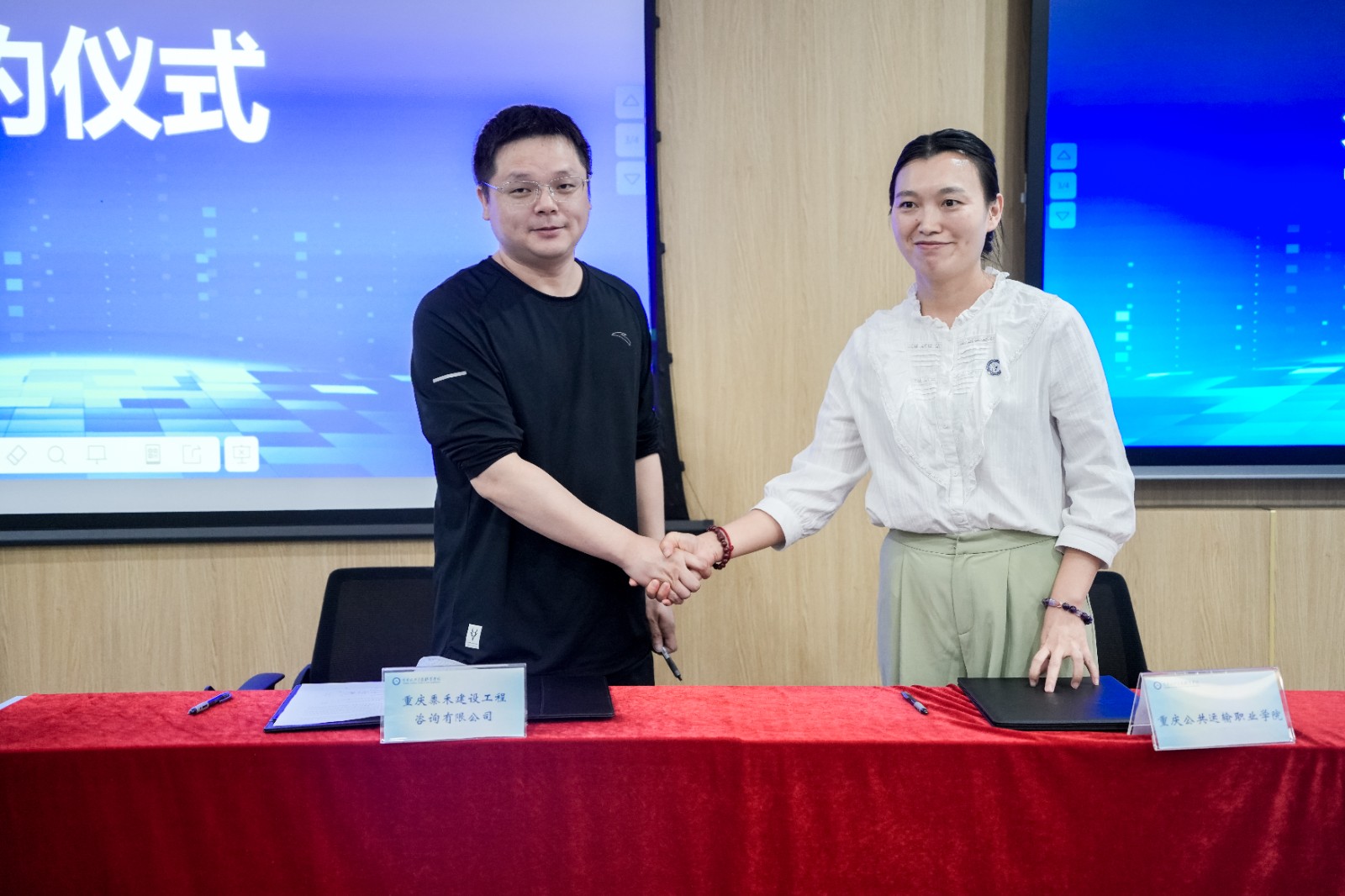 在全体参会人员的见证下,电子游戏与重庆黍禾建设工程咨询有限公司签署《成果转化协议》,推动桥梁检测技术从实验室走向“施工现场”,与重庆市国际物流口岸服务协会签署西部陆海新通道多式联运关键技术成果转化战略合作协议,标志江津区西部陆海新通道政行企校协同创新迈入实质化阶段。