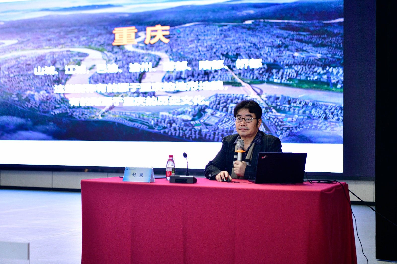 讲授过程中,刘强以朝天门长江大桥的景观改造、朝天门时空隧道创意设计、望龙门缆车修缮、南山一棵松缆车等项目为例,深入浅出介绍重庆“桥都”文化,阐释结合重庆本土文化,文旅融合,促进社会经济发展的构想与实践。