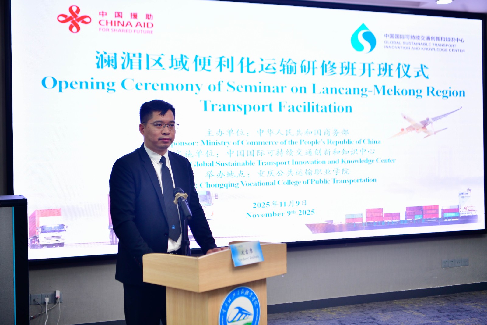 交通运输部运输服务司国际道路运输管理处刘明君处长在讲话中指出,澜湄区域地缘相近、经济互补,是共建“一带一路”和西部陆海新通道的重要区域。推动跨境运输便利化,不仅是提升物流效率的关键支撑,更是促进区域融合发展、增强产业链供应链韧性的战略举措。中国与老挝、缅甸、柬埔寨、泰国、越南等国家共同推动大湄公河次区域便利运输协定实施,取得积极进展。本次研修班聚焦“便利化运输”,是进一步凝聚共识、共享经验、共谋发展的重要平台,祝愿本次研修班取得丰硕成果。