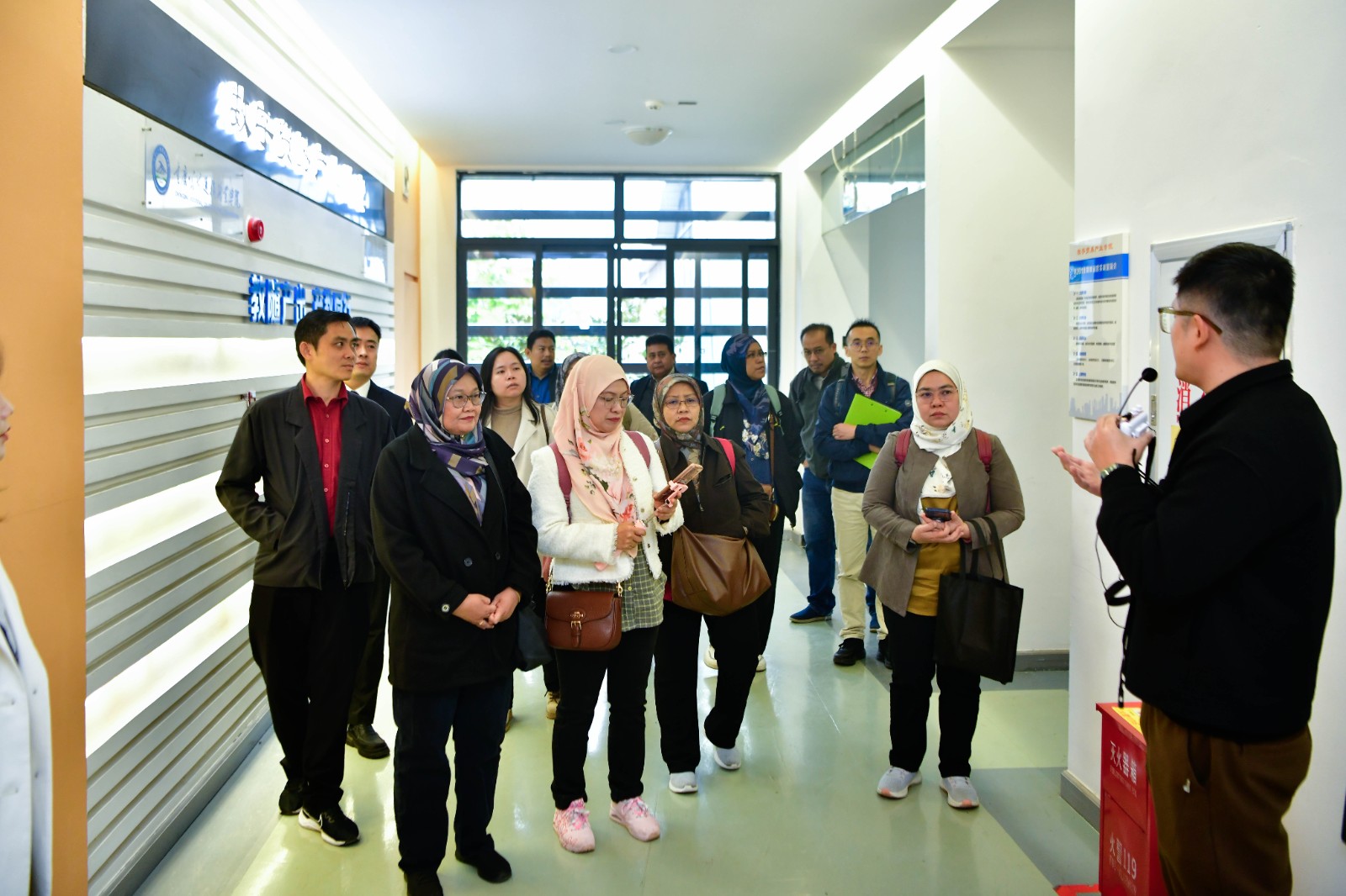 11月14日下午,来渝参加2025中国(重庆)—东盟物流行业合作会议的马来西亚苏丹阿兹兰沙理工学院副院长纳兹拉图鲁达·宾蒂·阿旺、马来西亚高等教育部理工教育与社区学院部治理与卓越部门总监穆罕默德·祖尔凯菲利·本·易卜拉欣等外国客人,到电子游戏访问交流。