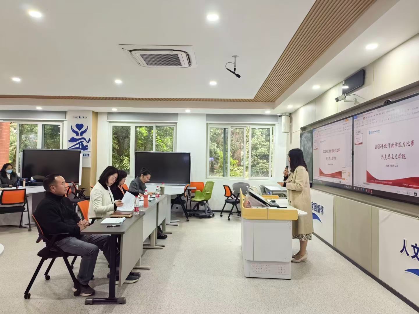 根据教育教学工作安排,11月14日下午,马克思主义学院在主校区B208教室,举行2025年教师教学能力比赛。全院12名思政课专任教师,分成四个小组参加本次比赛,达到了互学互鉴,以赛促教、以赛促学、以赛促改、以赛促研的目的。