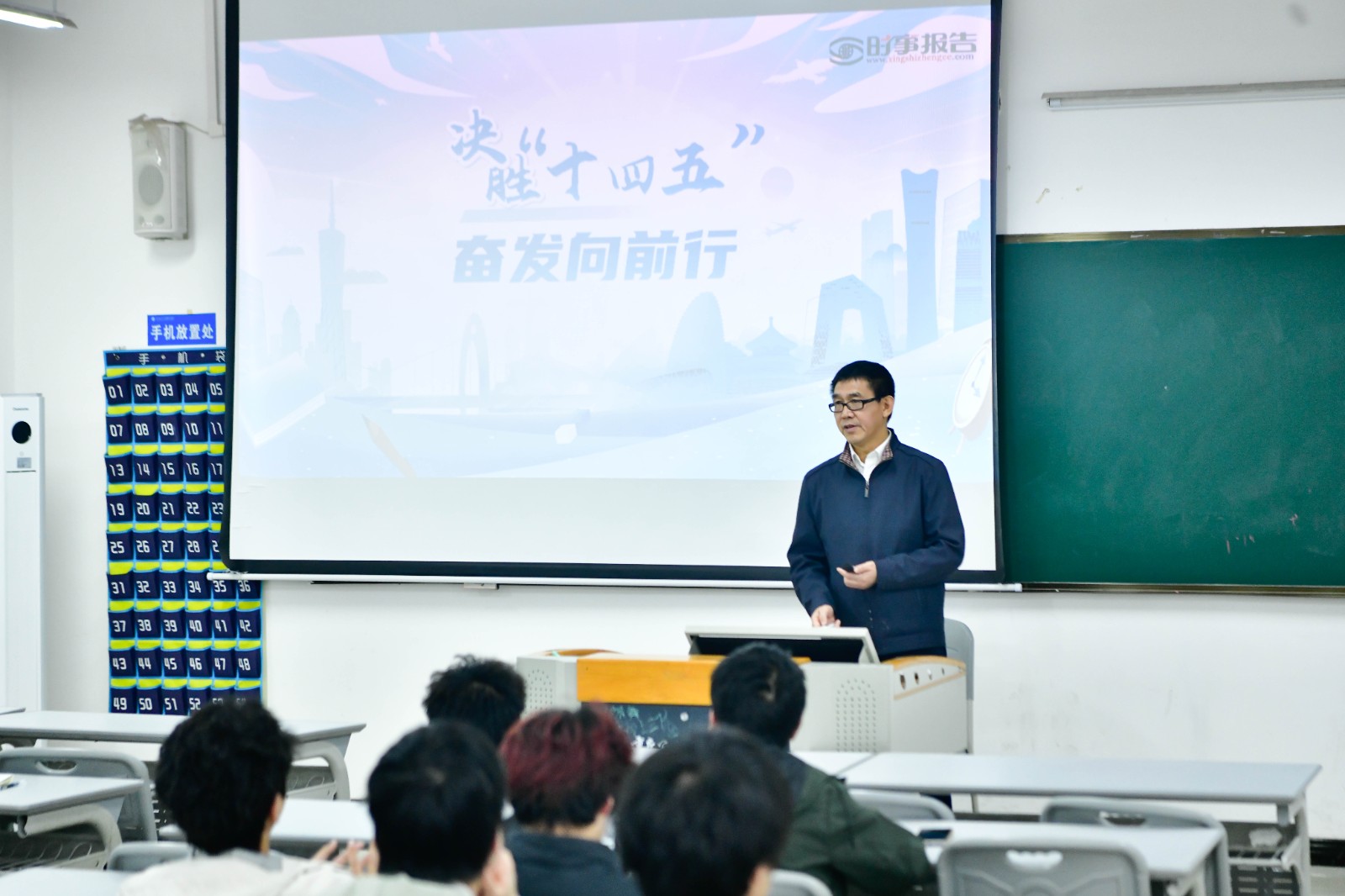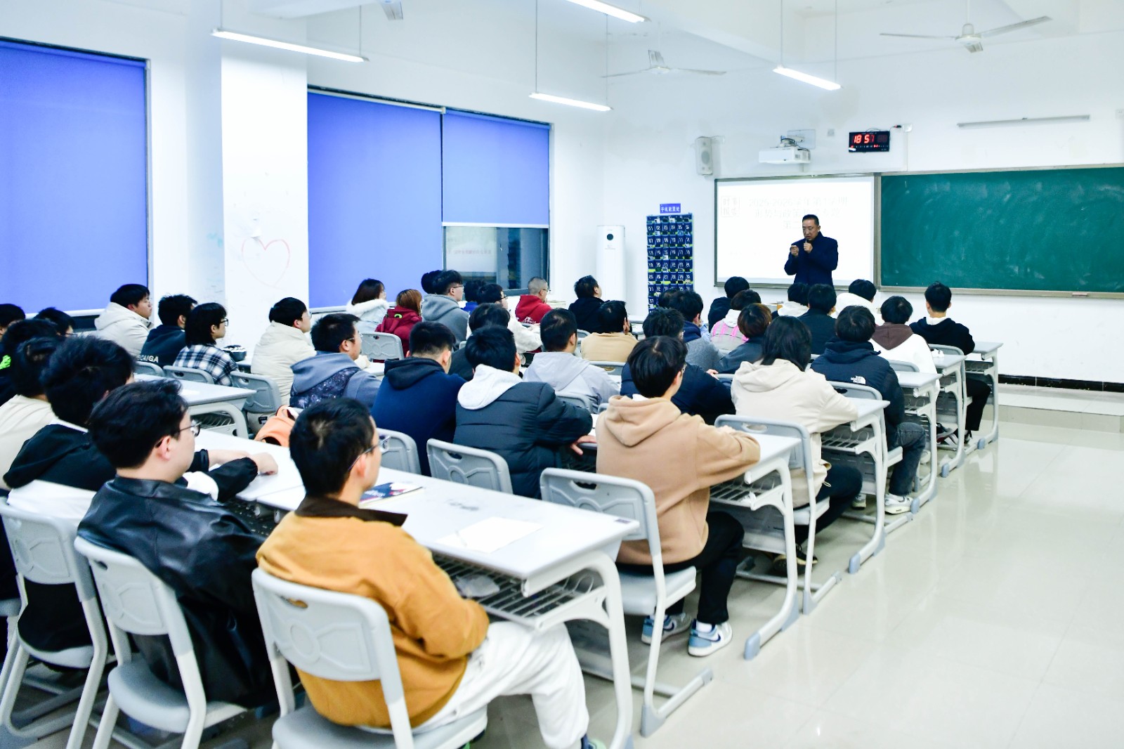 11月12日下午,吴海峰校长在科学城新校区教学楼A栋104教室,以“决胜‘十四五’奋发向前行”为题,从“十四五”时期我国发展取得的重大成就、经验启示,“十五五”时期经济社会发展的科学谋划等方面,面向智能装备学院新能源装备专业2501班的同学,宣讲党的二十届四中全会精神,引导同学们将小我融入大我,将青春献给祖国。