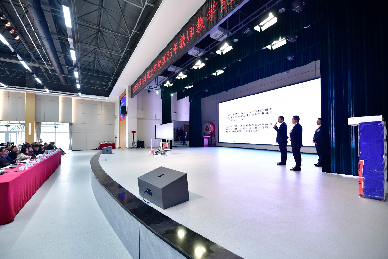 学校党委副书记、董事长刘林到场指导并宣布比赛开赛。白凯、何忞、马莉、陈兴劼等领导班子成员,人力资源处、教务处、科研处、实训中心负责人,各教学单位党政负责人、副院长、综合办主任,全校专任教师到场观摩。