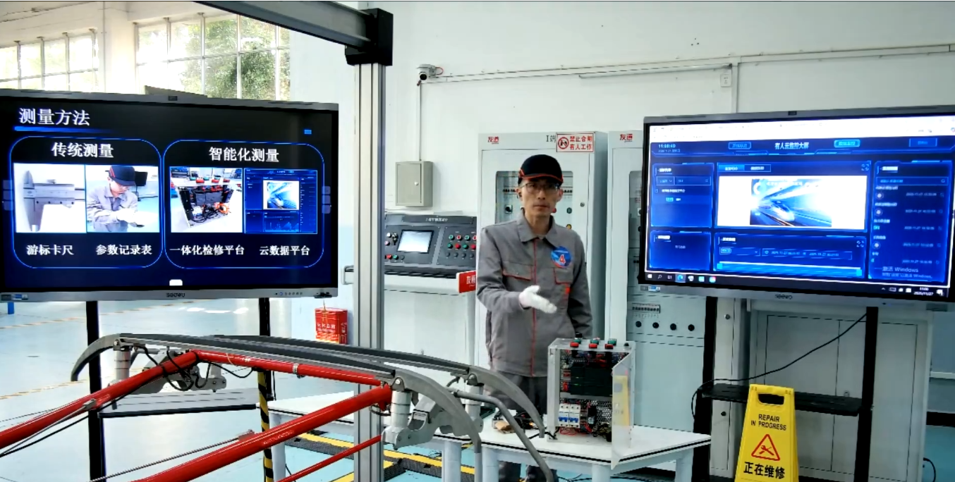 在教学实施报告环节,各参赛团队代表结合专业特点,系统阐述教学的整体设计、创新特色与实施成效,逻辑严谨,亮点纷呈。在现场无生教学展示环节,各参赛团队代表巧妙运用多种教学方法,做到深入浅出。其中,来自专业课程二组的轨道交通学院《城市轨道交通车辆检修》参赛课程团队、智能装备学院《工业机器人现场编程》参赛课程团队,采用第二现场远程直播的方式展示实操教学,给人留下深刻印象。在教学答辩环节,各参赛团队代表沉着应对,思路清晰,回答精准。整体上体现出电子游戏专任教师深厚的专业素养和扎实的教学功底。