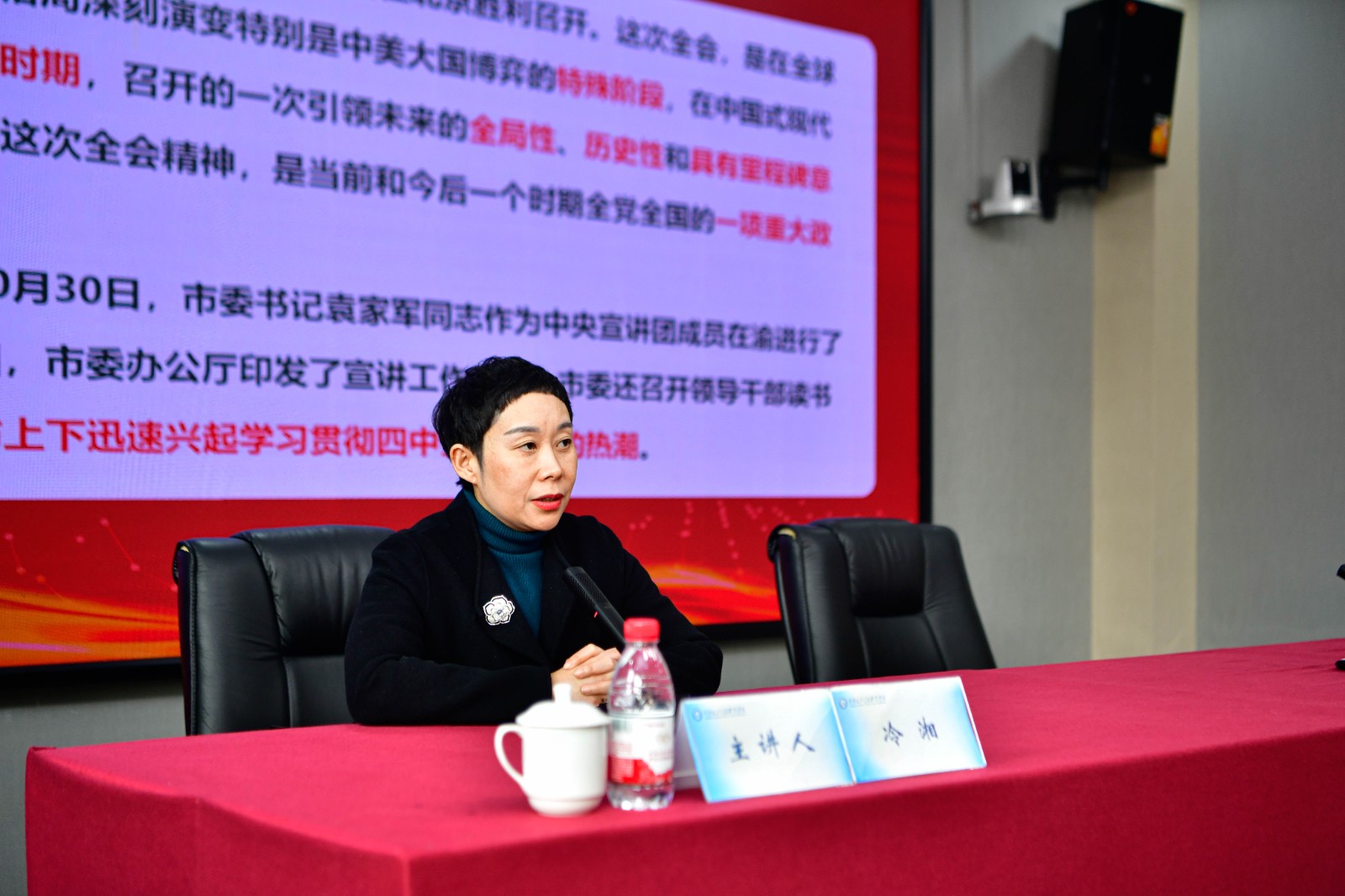 报告会上,冷湘从基本情况和重要意义,准确把握“十五五”时期在基本实现社会主义现代化进程中的重要地位,深刻领会“十五五”时期经济社会发展的指导方针和主要目标,全面理解“十五五”时期经济社会发展的战略任务和重大举措,坚持和加强党的全面领导、凝聚起推进中国式现代化的磅礴力量,对标对表深谋实干、体系化推动全会精神在重庆一贯到底等方面,对党的二十届四中全会精神作系统全面的宣讲。