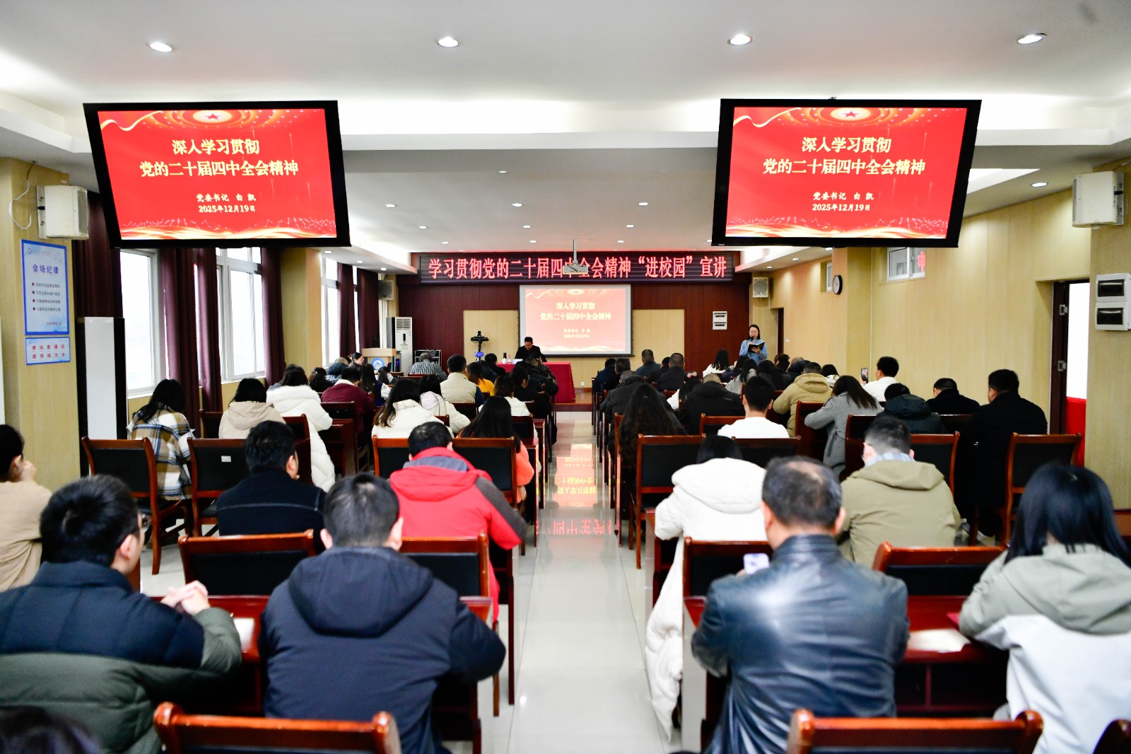 根据工作安排,12月19日上午,学校党委书记白凯在主校区教学楼A栋403会议室,面向机关职能部门、马克思主义学院全体教职工,宣讲党的二十届四中全会精神。
