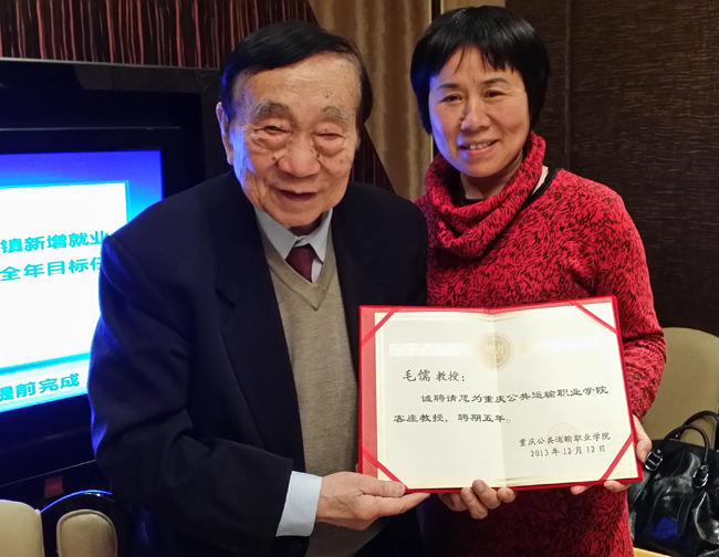 毛儒教授一行对学院紧贴企业实际、专注技能人才培养的办学方式给予了肯定,并对学院调整优化专业及课程设置提出了宝贵的意见和建议。学院聘请毛儒教授为客座教授,并颁发了聘书。