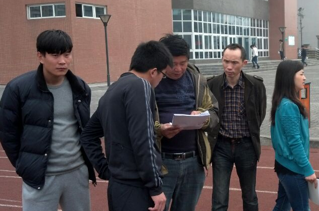 2014年3月18日上午10:00,重庆市江津区体育局彭科长及双福教管中心相关领导一行6人前来我院进行体育场地普查数据实地审核工作,学院副院长张健、基础教学部主任黄江及相关教师陪同审核。