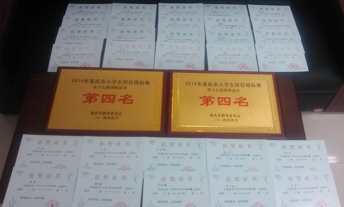 我院组队参加本届重庆市大学生田径锦标赛,得到了学院领导和基础部领导的高度重视,在体育教师于世辉、谢永辉的积极训练与指导下,通过队员们的顽强拼搏,最终我院代表队取得了4个单项第一名、3个单项第二名、3个单项第三名,并获得乙组男子团体第四名、女子团体第四名的较好成绩,为学院争得了荣誉,在全市高职院校中展现了我院的风采,实现了我院参加市级运动技能竞赛的新突破。