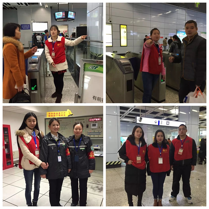 为充分发扬“奉献、友爱、互助、进步”的志愿服务精神,有效发挥社会实践活动在大学生思想政治教育中的重要作用,在重庆轨道集团团委的大力支持下,重庆运输职院团委于2016年1月8日至1月22日组织200余名青年志愿者开展了以“青年志愿行,服务你我他”为主题的寒假轨道志愿者服务活动。活动期间,青年志愿者在重庆轨道交通1、2、3、6号线相关站点协助车站管理人员,面向广大乘客开展了购票引导、检票引导、站台引导、扶梯引导、客车引导等服务工作。在切实有效配合轨道车站管理工作的同时,青年志愿者近距离了解了轨道交通运营知识,体会了我市轨道交通文化,还以实践感受为切入点,撰写了心得体会50余篇,其工作成绩赢得广大乘客和轨道集团团委的普遍赞誉。