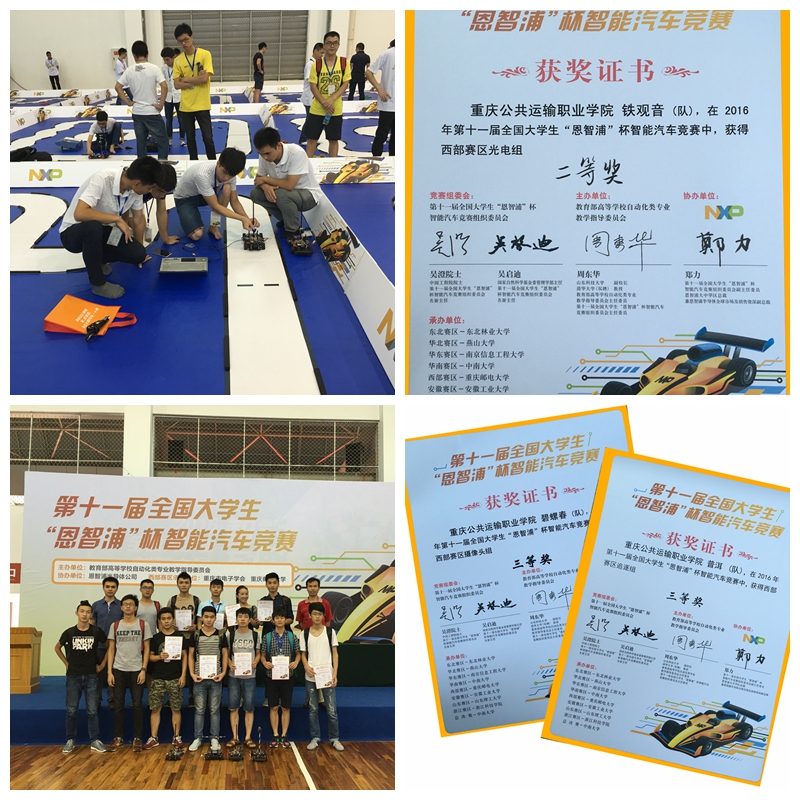 (2)第十一届全国大学生“恩智浦”杯智能汽车竞赛西部赛区光电组二等奖1项,摄像头组三等奖、双车追逐组三等奖各1项;