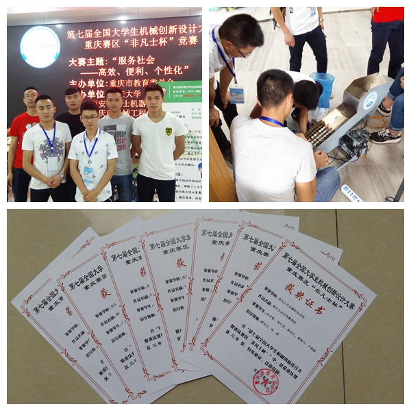 (3)第七届全国大学生机械创新设计大赛重庆赛区“非凡士杯”竞赛三等奖1项;