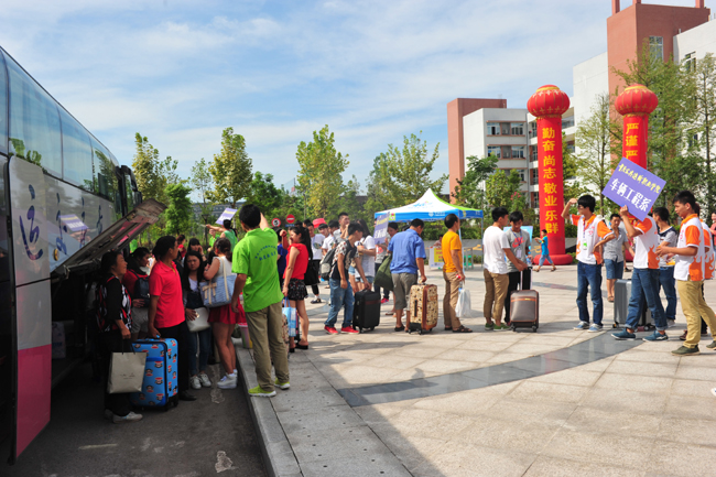 学院各职能部门各展奇招,齐心协力为方便新生入学提供人性化服务。学院在重庆菜园坝火车站、重庆龙头寺火车站(火车北站)、重庆四公里交通换乘枢纽站、重庆汽车北站(红旗河沟长途汽车站)、重庆陈家坪长途汽车站、南坪汽车站、双福(原交巡警平台)共计7个站点,并有交通车将新生及家长免费送到校园里。在新生报到现场,迎新总站示意图、报到流程图、家长休息区等都做了明显标志,并安排志愿者为新生指引方向,帮助新生办理报到手续。学院还提供了行李寄存、休息场所、免费饮用水等贴心服务,为新生和家长提供了完备细心的后勤保障。
