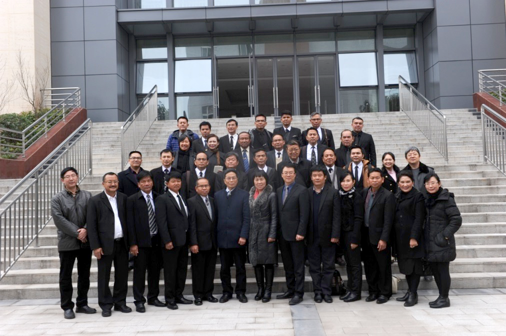 由泰国孔敬大学孔子学院王贵彬院长和泰国班派工业教育学院占亚帕布校长带队,包括孔敬工业职业学院的阿杜校长在内一行共28人的泰国高职院校校长访问团首先参观了我院的轨道交通实训中心。该中心先进的实训设备和逼真的模拟仿真教学场景受到校长们的高度赞赏,他们对我院在轨道交通教学和实训建设、校企合作育人等方面的突出优势和成果给出了充分的肯定和高度的评价。