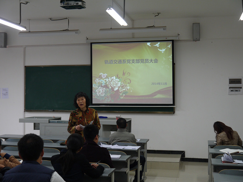 2014年11月4日13点,轨道交通系党支部在学院B401教室召开支部党员大会,支部全体教师党员参加,会议由轨道交通系党支部书记丁晓莹主持。