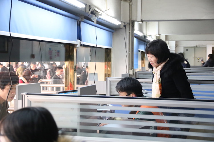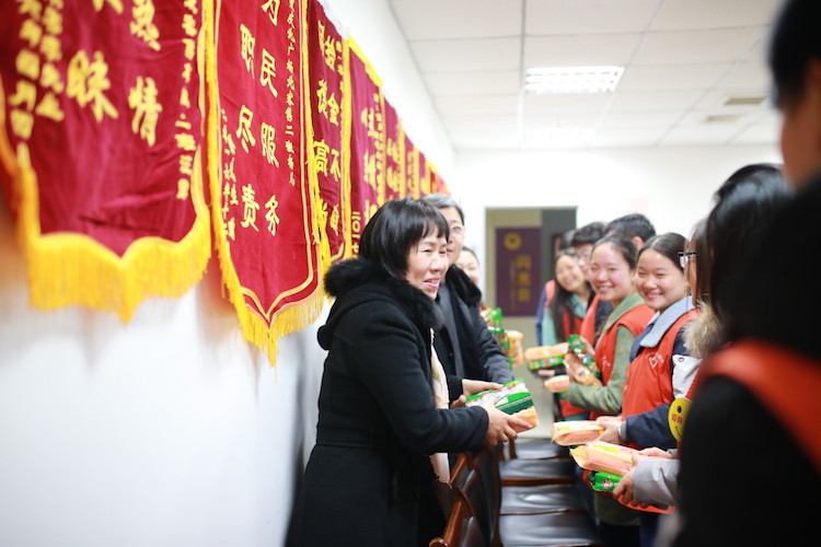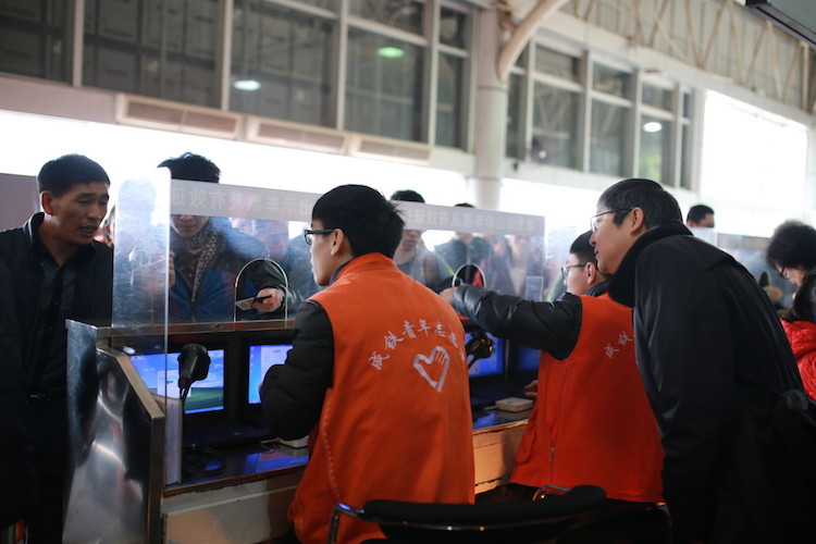 随后,慰问团到达重庆北南广场车间,车间书记欧铁君热情接待了学院慰问一行人,重庆北南广场车间共有91名实习志愿者,除了票务以外,还包括候车厅入口验证、检票等岗位。学院领导与老师们在欧书记的带领下,来到售票房、验证处看望正在岗位上辛勤工作的志愿者们,当看到验证处志愿者们一丝不苟的查验、不厌其烦的引导乘客时,大家纷纷感叹:这就是春运精神“专注”的最好体现!欧书记对我院学子予以了高度的肯定与表扬,同时,她说到,一切的磨砺皆面临着机遇与挑战,我们的同学们在工作中认真仔细,具备较高的职业素质。最后,彭书记、刘院长亲自为同学们送上春节慰问物资,恭祝所有的志愿者们新年快乐!
