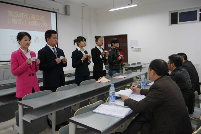 2014年12月10日上午9:00,重庆轨道集团公司人力资源部带队各所属网络运行公司、车辆公司、通号公司等用人单位一行20余人到我院选拔优秀毕业生,通过轨道公司对毕业生的初选共计有376名2015届毕业生参加了此次面试,并于下午14:30分整个专场招聘会圆满落下帷幕。