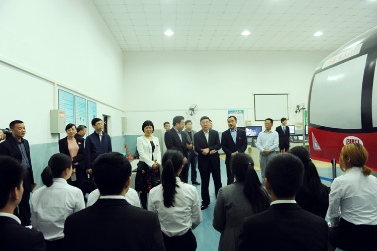 李方宇董事长一行视察了城市轨道交通技术实训中心、公运科技众创空间、人文艺术长廊、图书馆、教工宿舍等校园教学设施设备。在轨道模拟驾驶实训室,李方宇董事长观摩了轨道车辆与机械系正在组织的城市轨道交通模拟驾驶实训考试,并在候考区与同学们亲切交流。李方宇董事长勉励同学们,学院专业特色突出,就业形势好,要抓住机会,认真学习,扎实掌握专业知识,为我市公共交通发展作出贡献。