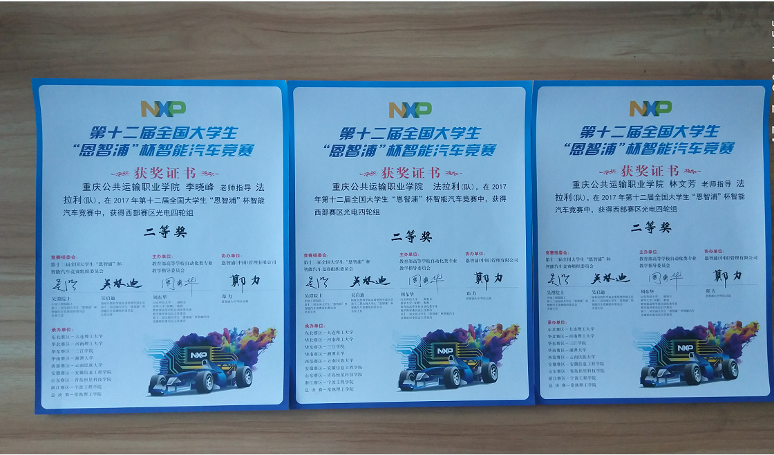 当前位置:首页 > 新闻中心 > 学校动态 > 学校动态 我院在第十二届全国大学生“恩智杯”智能汽车竞赛中荣获西部赛区二等奖 来源:学校动态发布时间:2017-09-01 08:41访问量: 为加强大学生实践、创新能力和团队精神培养,促进高校教育教学改革,教育部高等学校自动化类专业教学指导委员会于2017年8月举办了第十二届全国大学生“恩智杯”智能汽车竞赛,经过激烈角逐,运输职院法拉利队(汽车工程系)荣获西部赛区光电四轮组二等奖。