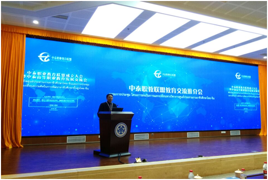 在中泰职业教育联盟成立大会上,学院当选为中泰职业教育联盟副理事长单位。重庆市教委特使、国际处处长李世玉,泰国教育部部长办公委员会委员纳里南·黎勇泰,泰国教育部部长顾问卡庄萨·泰巴育,江津区政协副主席李远杰,泰国教育部职业教育委员会副秘书长萨洛庄·孔祖迪奥,以及来自泰国18所高校的负责人和来自四川、湖北、贵州、重庆、广西等省市的20余所高职院校代表,中泰企业代表出席联盟成立大会。
