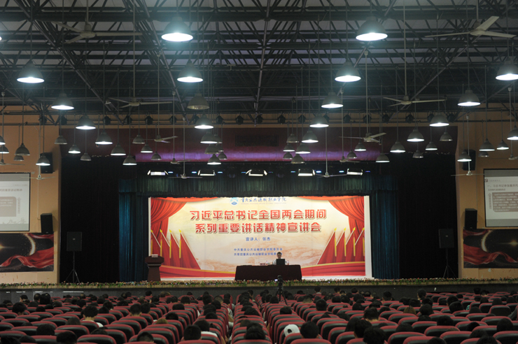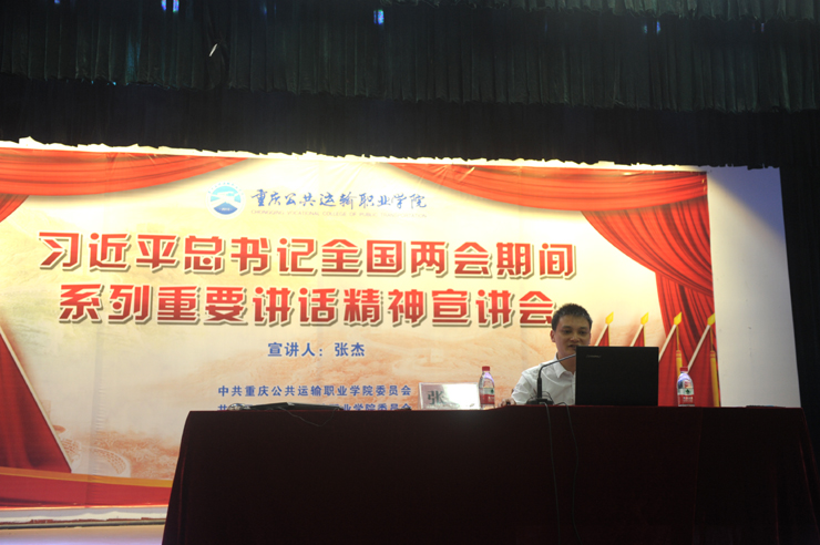5月9日下午,澳门正规电子游戏平台报告厅内座无虚席,第十三届全国人大代表、国家级技能大师工作室负责人、重庆市优秀技能人才、重庆交通开投集团劳模创新工作室负责人张杰满怀激情地为我院师生宣讲了两会精神。我院领导班子、党总支书记、党支部书记、各部门负责人、教师代表、辅导员和学生代表共计1000余人聆听了宣讲报告。
