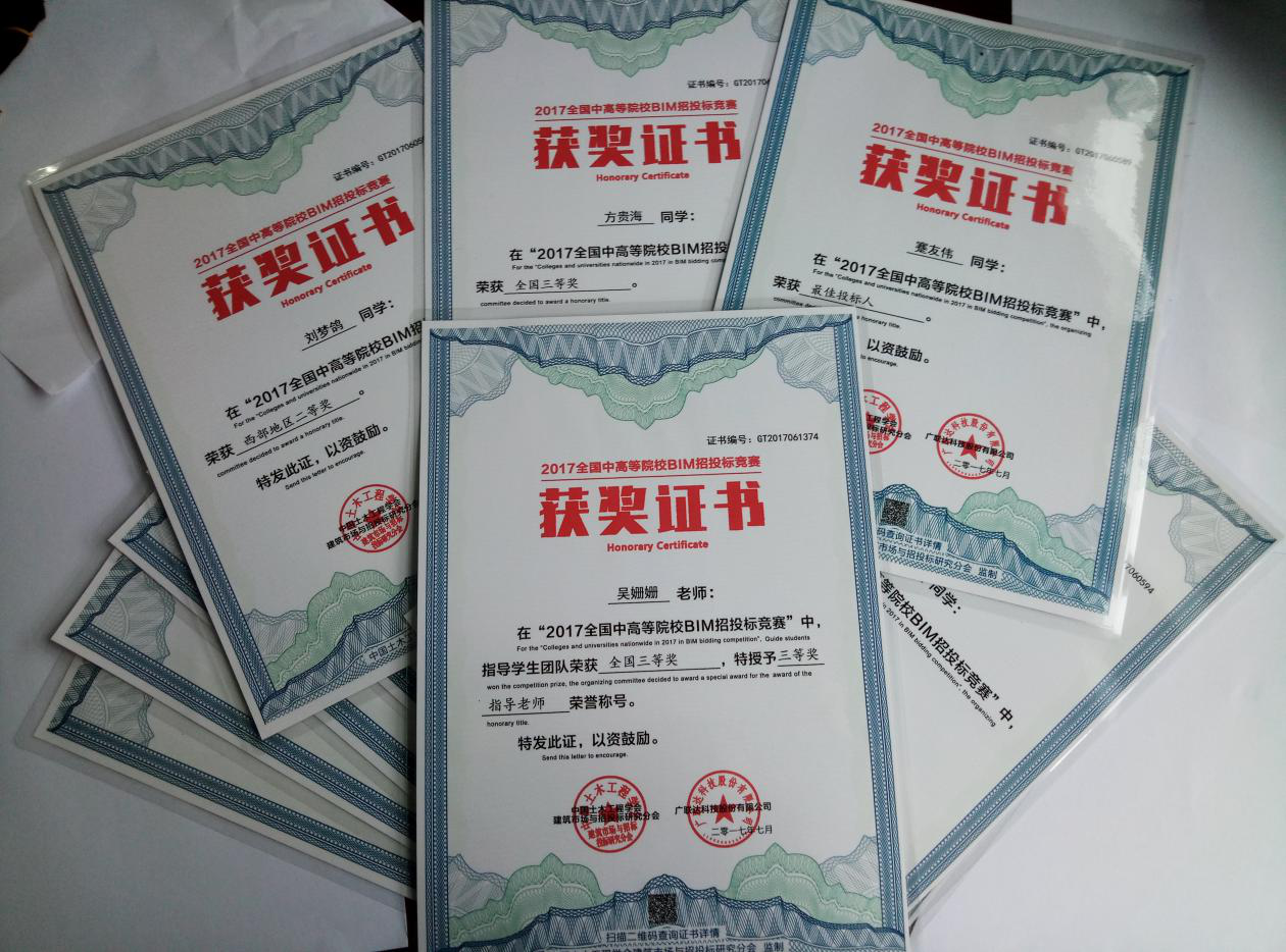 铁道与建筑工程系学子荣获 “全国中高等院校首届BIM招投标网络竞赛”全国三等奖