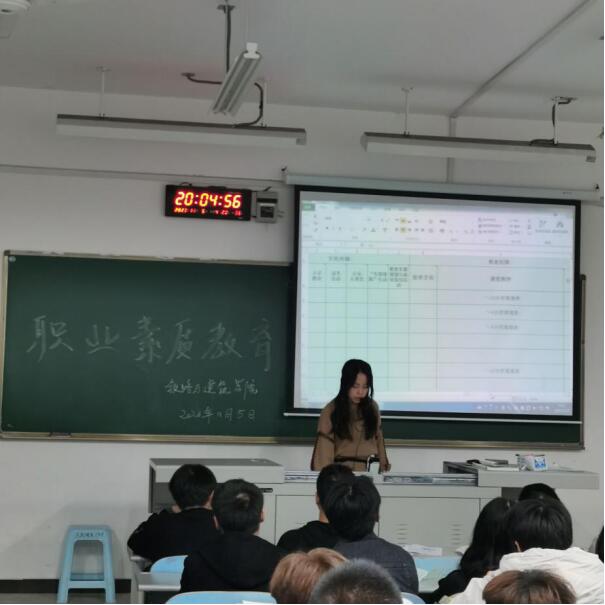 2020年11月5日晚19点30分,铁道与建筑系2020级全体同学在教学楼C304开展了职业素质教育主题班会,班会由辅导员殷镭老师主讲。
