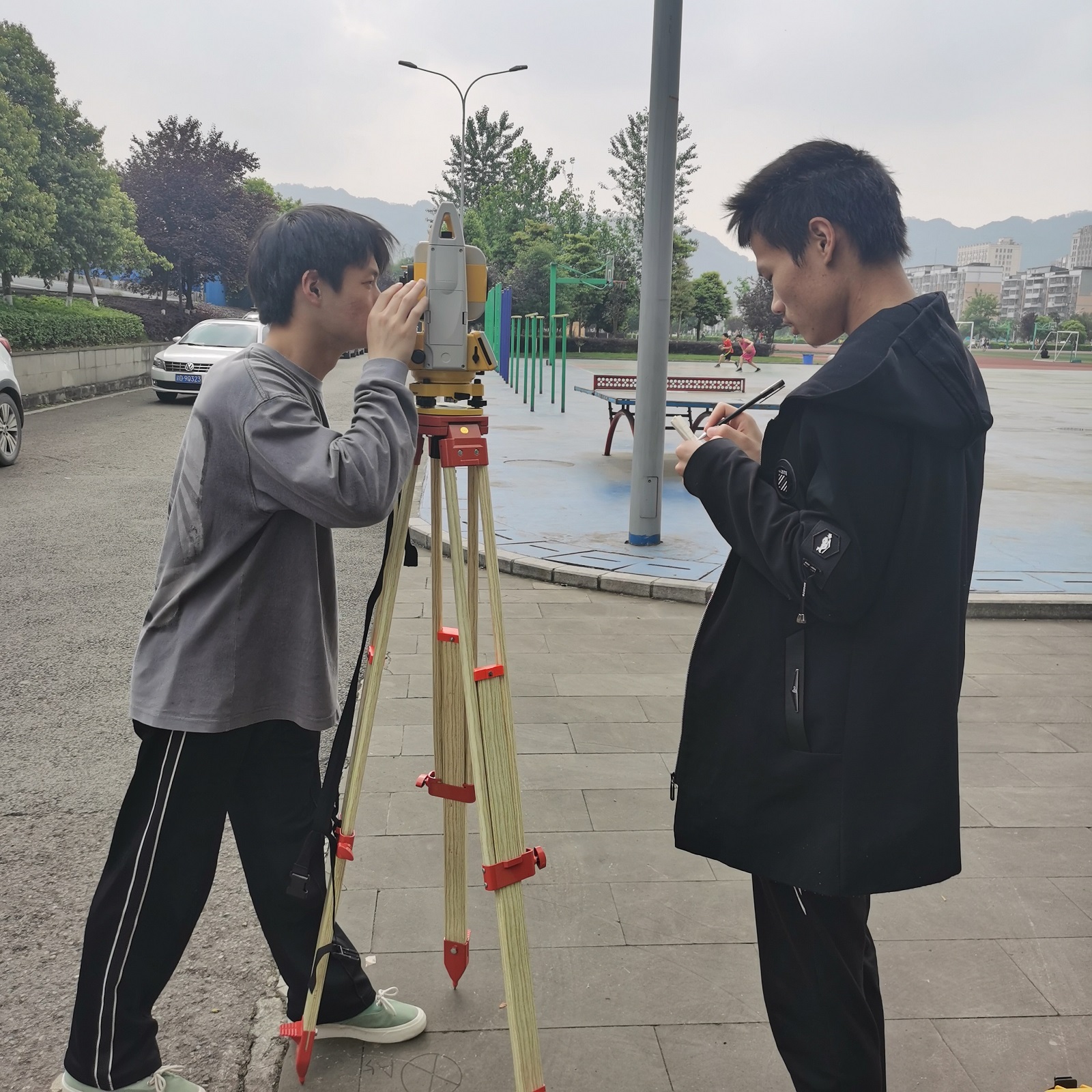 道桥2001班本周开展工程测量实训课程。在王影老师的指导下,围绕学校进行了四等水准测量以及闭合导线控制测量。本次实训目的在于通过实地的测量计算,巩固课堂所学习的理论知识,熟练掌握水准仪,全站仪的使用操作,掌握四等水准测量以及导线测量的计算方法。在实训的同时提高团队协作能力。