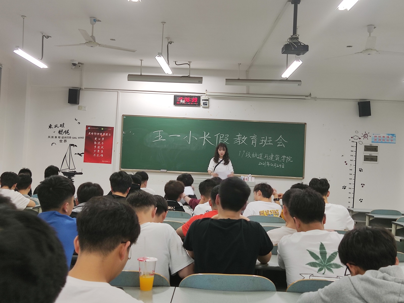 为加强安全教育,确保假期安全,铁道与建筑学院在2021年4月26日组织全体学生在C305教室进行“五一”放假安全教育。