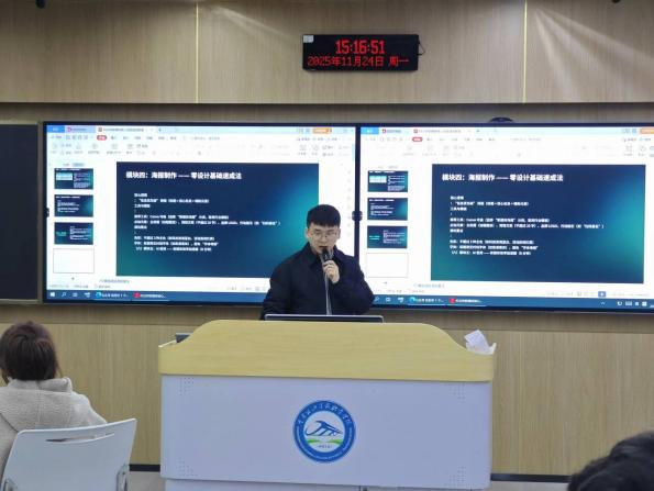 为进一步提升智慧交通学院、铁道与建筑学院新媒体中心学生骨干的宣传实践能力与媒体技能,2025年10月24日下午,智慧交通与建筑联合学生党支部在主校区B208多媒体活动室开展“媒体技能”专题培训,支部宣传委员郭希诚老师担任主讲人。
