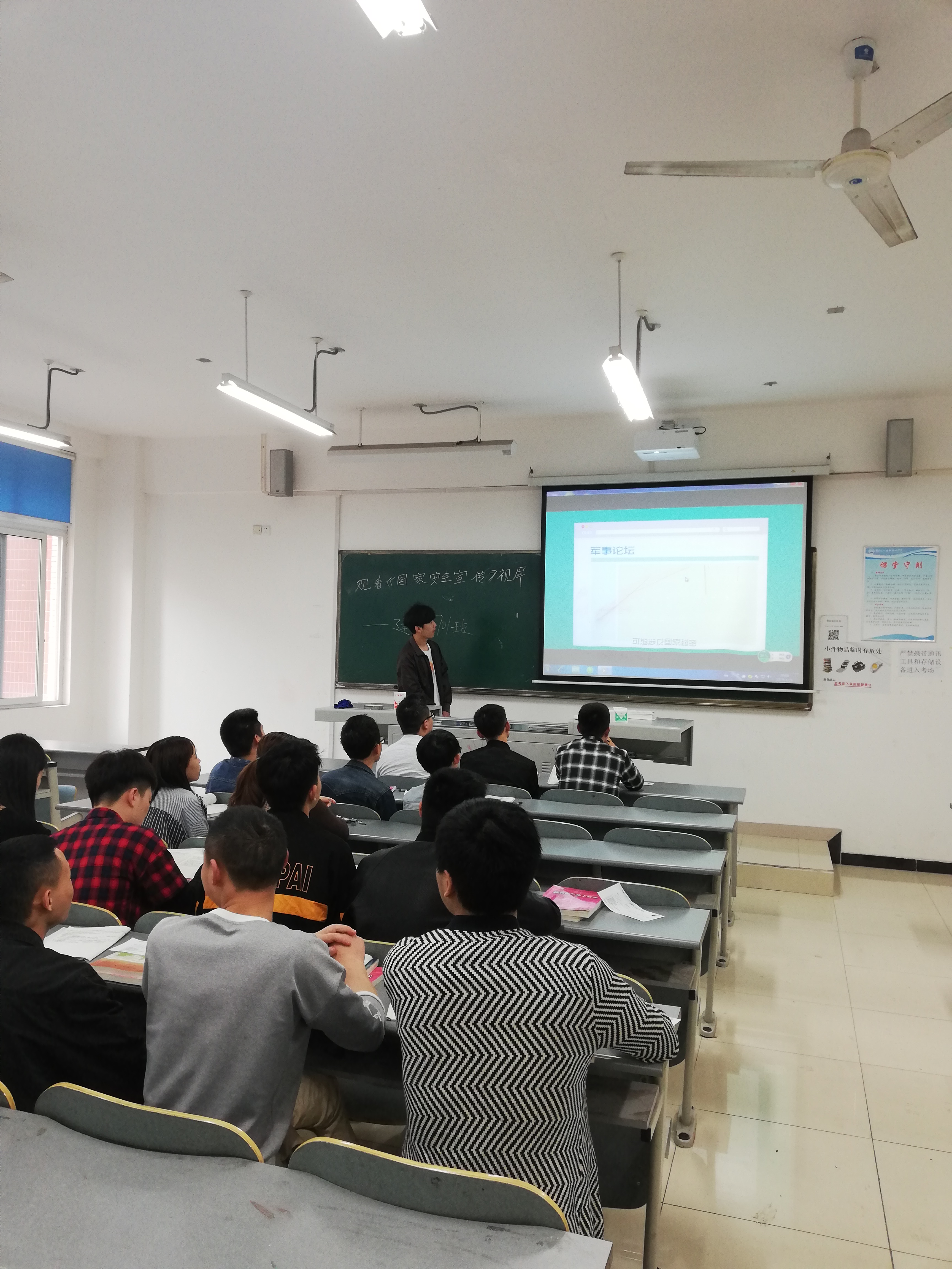 2019年4月16日周二上午8点15分,17级铁道与建筑工程系三个专业利用早自习的时间分别在B301、B303、B306教室观看学习《国家安全宣传视屏》。