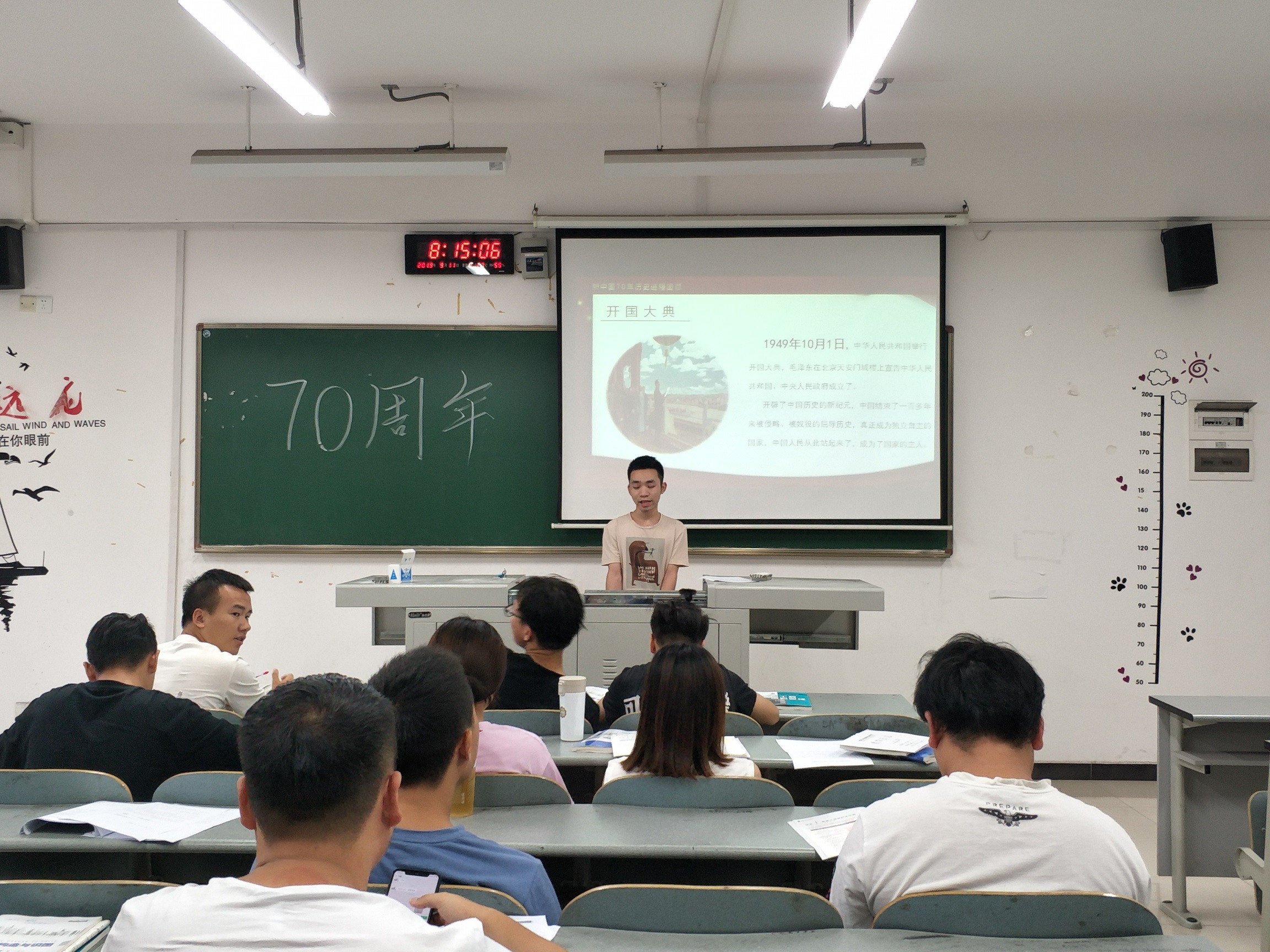 今天9月11日,建工班早读由石红同学为大家演讲,他为同学们介绍了中华人民共和国成立70周年,华夏大地的沧桑巨变,虽然短短的70年如同白驹过隙般,却也是在中国的历史书上谱写了浓墨重彩的一笔。