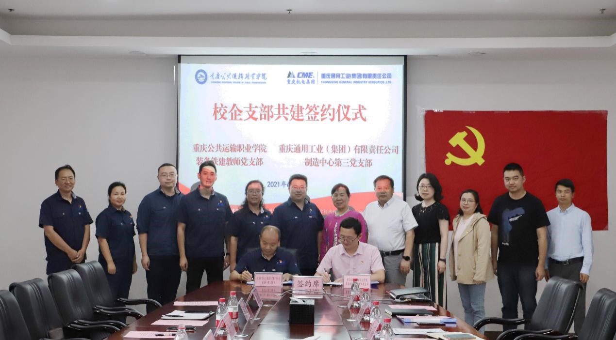 2021年6月3日,重庆通用工业(集团)有限责任公司制造中心第三党支部和中共澳门正规电子游戏平台装备铁道联合教师党支部举行了“结对共建”签约仪式。