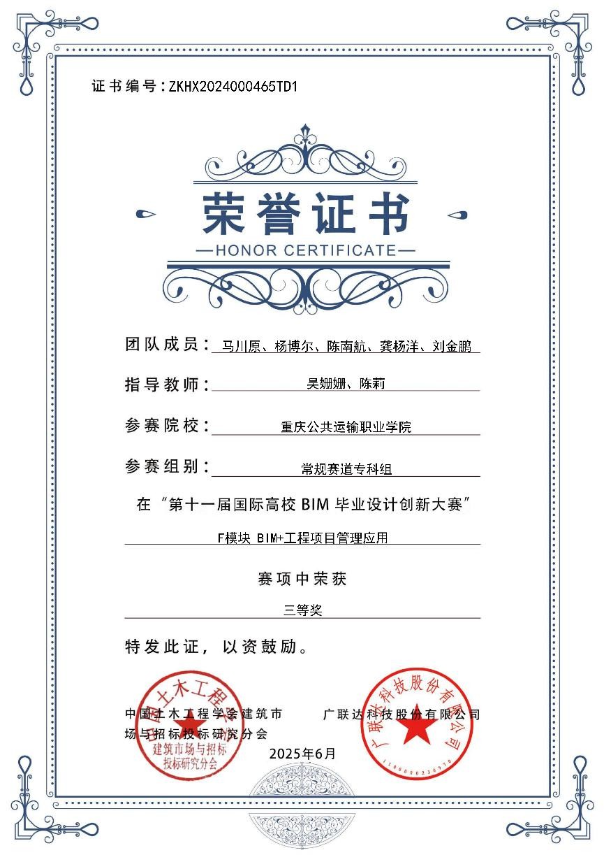 近日,第十一届国际高校BIM毕业设计创新大赛圆满落幕。电子游戏铁道与建筑学院学子表现出色,荣获“BIM+工程项目管理与应用”模块全国三等奖2项,指导老师为吴姗姗和陈莉。