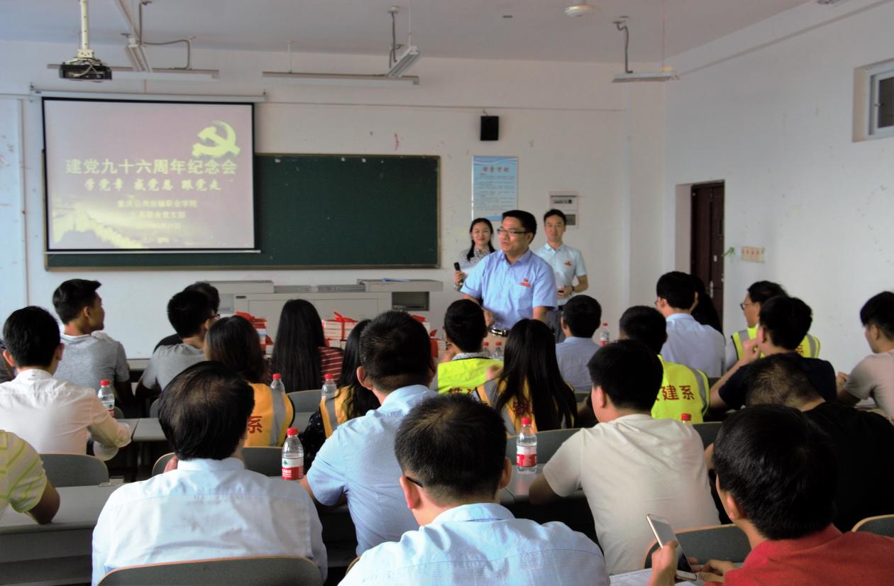 2017年6月21日下午14:00,为纪念建党96周年,弘扬党的优良传统,激发党组织活力,增强党员党性意识,三系联合党支在D506多媒体教室召开“建党九十六周年纪念会”。参加本次会议的有学院常务副院长李海峰、三系联合党支部书记彭绍琳、汽车工程系主任袁可夫、铁道与建筑工程系主任何安荣、人文艺术系主任黄江、党群工作处万巧老师以及三系全体党员教职工及入党积极分子。