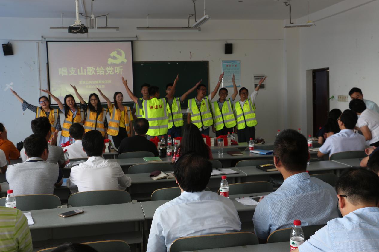 会中各系纷纷带来精彩的主题表演:人文艺术系的各位教职工气势宣扬的表演了诗歌朗诵《旗帜》。铁建系精神奋发的演唱了一首《团结就是力量》。最后,彭书记为我们深情的演唱了一首 《党,亲爱的妈妈》歌曲,歌声婉转动听,余音袅袅、让人赞不绝口,深厚的表达了对党的“情怀感、幸福感、境界感、责任感和光荣感”五种以“民”为本的崇高感情,在此赢得台下阵阵掌声!