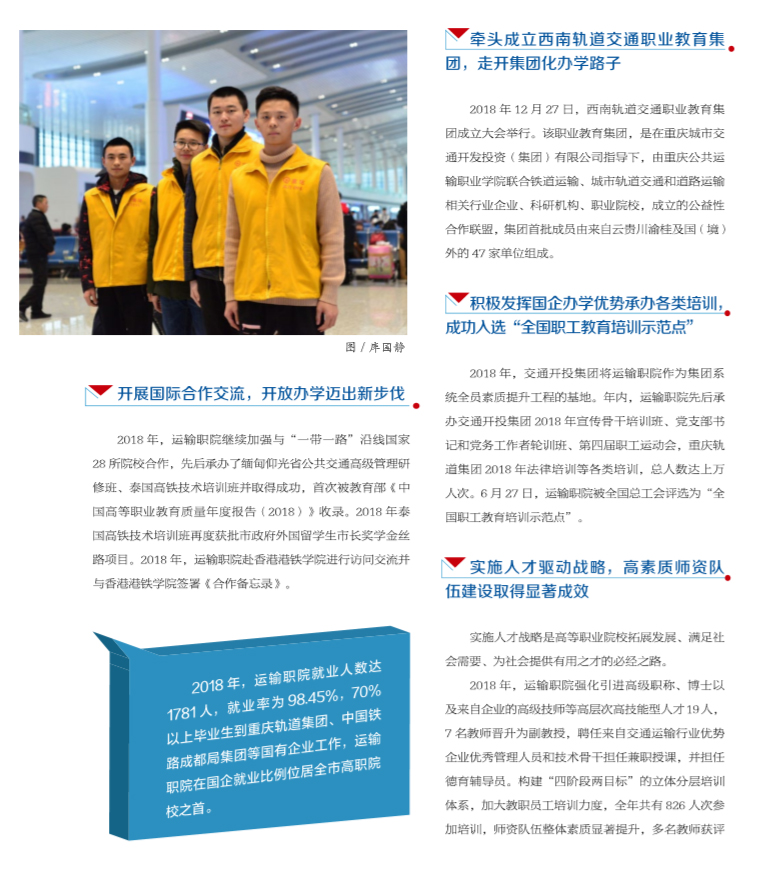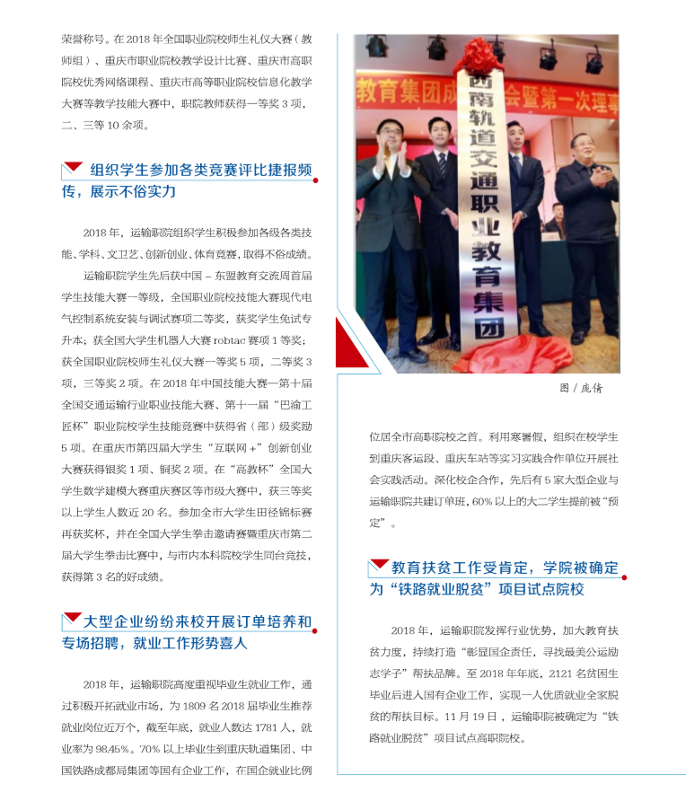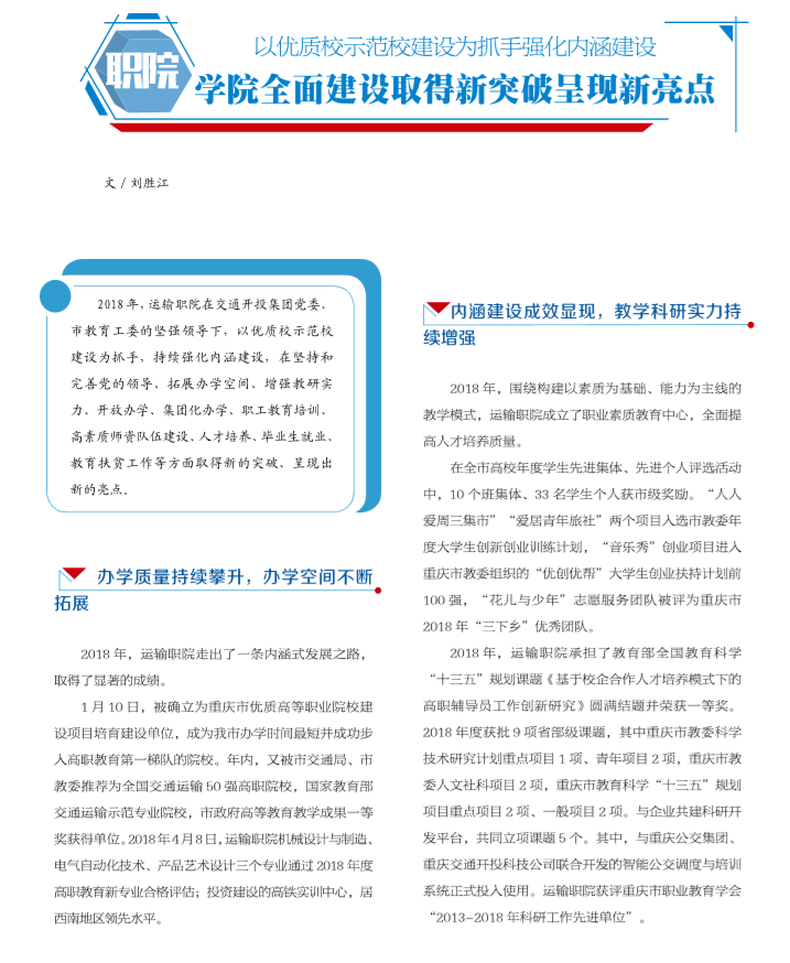 当前位置:首页 > 新闻中心 > 媒体聚焦 > 媒体聚焦 【交通开投杂志】职院:以优质校示范校建设为抓手强化内涵建设 学院全面建设取得新突破呈现新亮点 来源:媒体聚焦发布时间:2019-03-12 15:23访问量: