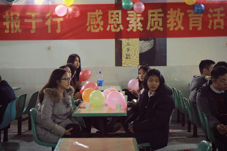 2016年11月30日,在气温骤降的冬季,成铁定制班成功举办“感恩于心·回报于行”感恩素质教育活动,莅临本次活动的有成铁定制班管委会杨宝成主任、黎光全老师、王欣老师、冉彤老师。来自车辆班的崔姗姗同学担任本次活动主持人。