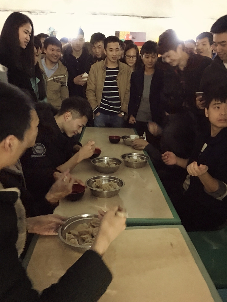 活动在黎光全老师的发言中正式拉开帷幕。首先“爱在冬季”包饺子比赛如火如荼的进行着,三组队员在限时两分钟的比赛中拼实力、讲策略、比气势各有所长,最终获胜的车辆班代表队经验丰富的五位女同学。在同学们的欢呼下杨宝成主任和黎光全老师进行了一对一比拼,最终黎光全老师获胜。而杨宝成主任为了不浪费食材在比赛之后仍把剩余的饺子包完了,这是同学们不曾看到的一面,值得全体同学学习。