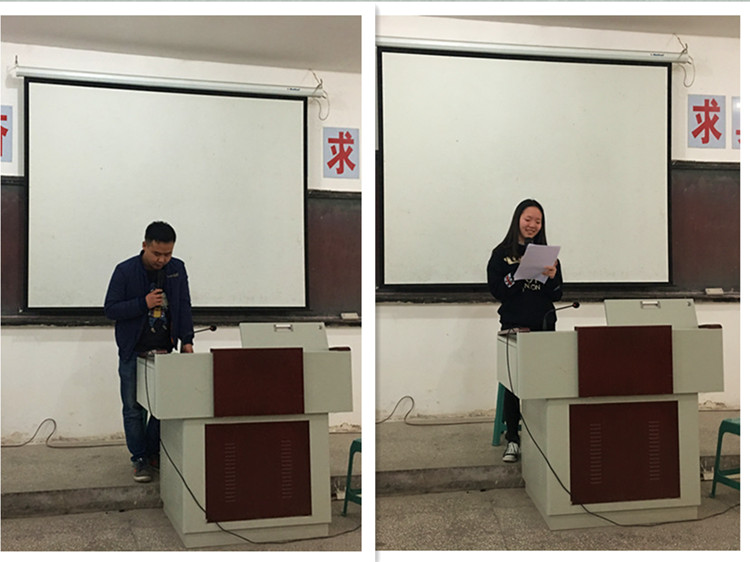 胡可、田赟同学作为学生代表进行了发言。表达了谨记老师的教诲,保证完成顶岗实习的决心。