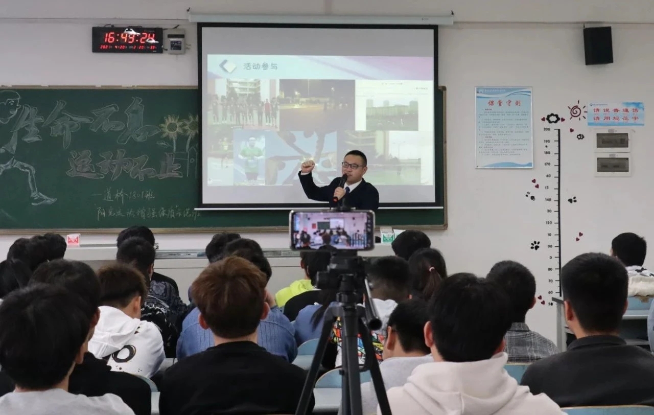 铁道与建筑学院道路桥梁工程技术1801班近日召开了“无运动·不青春”做全能新青年示范班进班宣讲会,会议由辅导员殷镭主持召开。宣讲会介绍了班级特色、活动建设、建设成果、奖项等,对整个班级的文化特色与成就进行了总结。