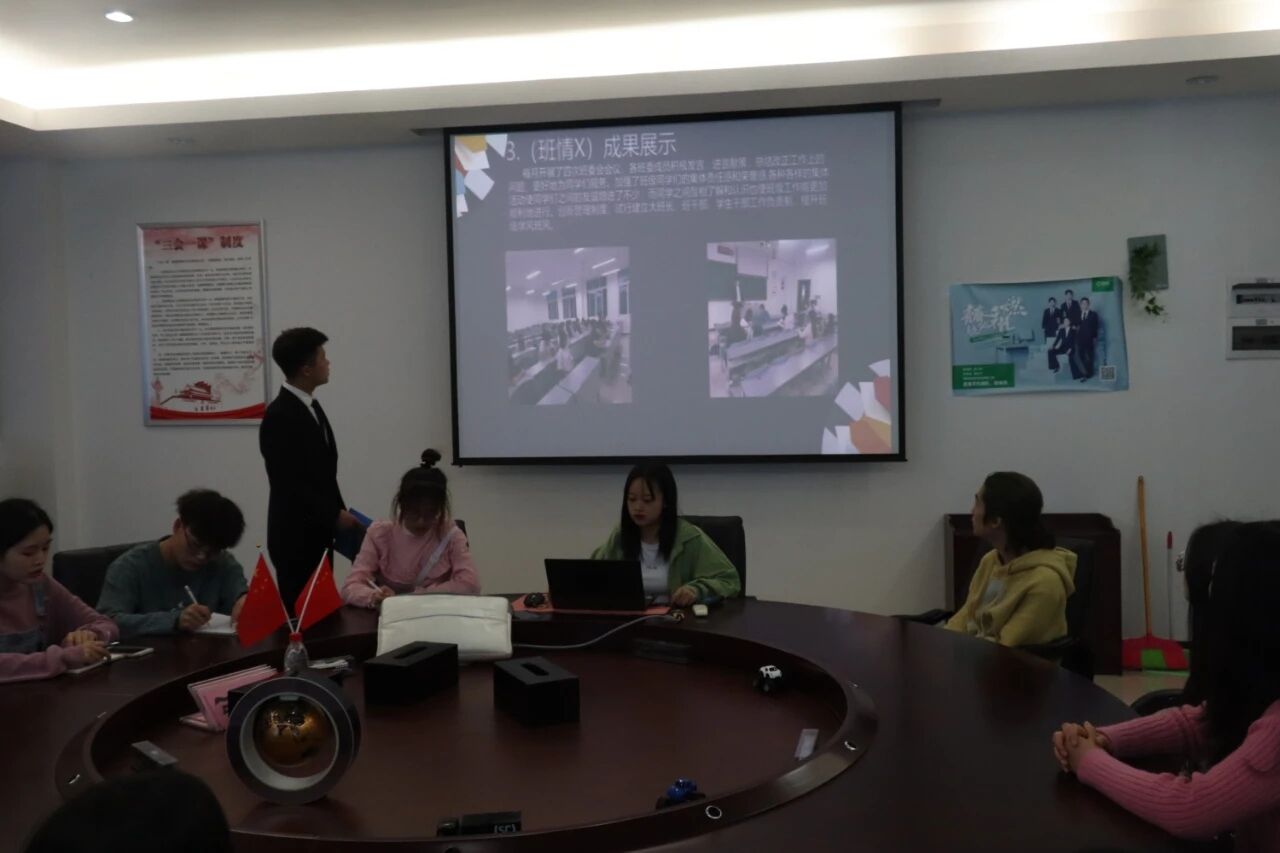 运输贸易学院轨道运营1908班近日召开了“学生干部”示范班示范班进班宣讲,会议由辅导员库国静主持召开。宣讲会介绍了具体工作、成果展示、基本工作的完成情况等,对整个班级的成果逐一展示并总结。