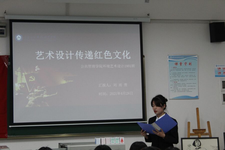 公共管理学院环境艺术设计1901班于2021年4月28日召开了“艺术设计传递红色文化”示范班进班宣讲会,会议由辅导员潘勇老师主持召开。宣讲会介绍了班级的建设基础、建设目标、建设背景、民族精神和示范成果等方面,对整个班级的成果进行了总结。