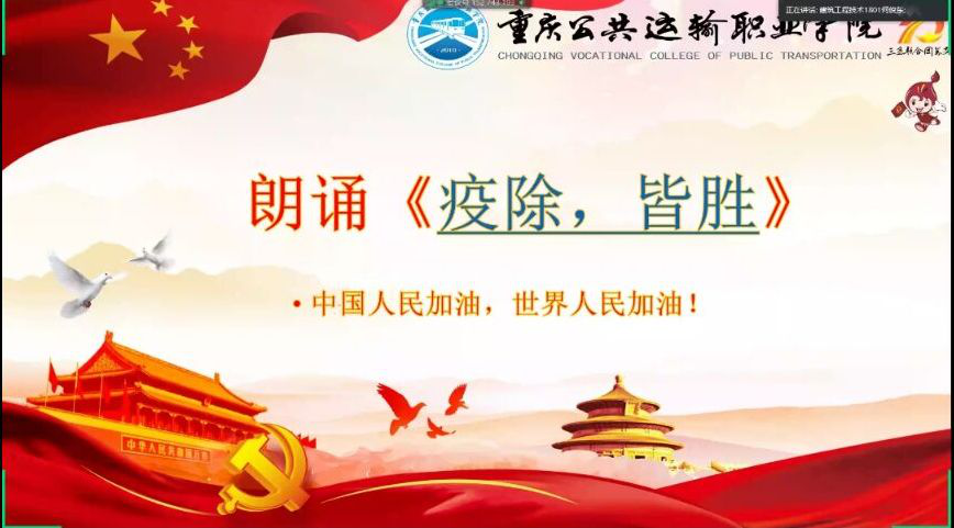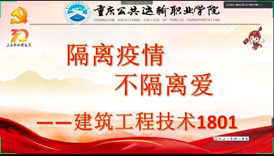 4月27日,星期一下午,铁道与建筑工程系建筑工程技术1801班开展了“隔离疫情,不隔离爱”的线上主题班会,本次班会诚挚邀请学院各位领导、老师观摩,班级全体同学参与线上主题班会。