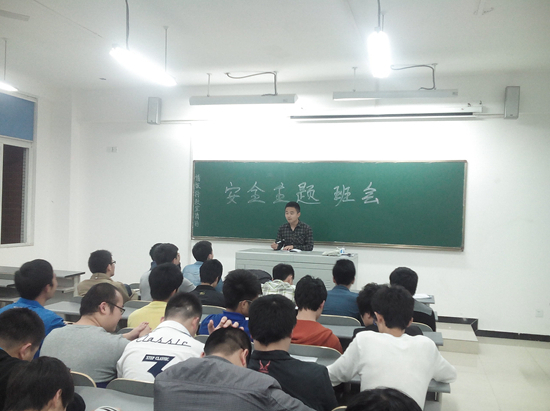 为增强学生的安全防范意识,提高学生的自我保护能力,在2014年4月20日晚,车辆系各班召开了一次安全教育主题班会。本次教育内容涉及酗酒、防盗、防骗、交通、溺水、心理健康及人身财产等方面安全。
